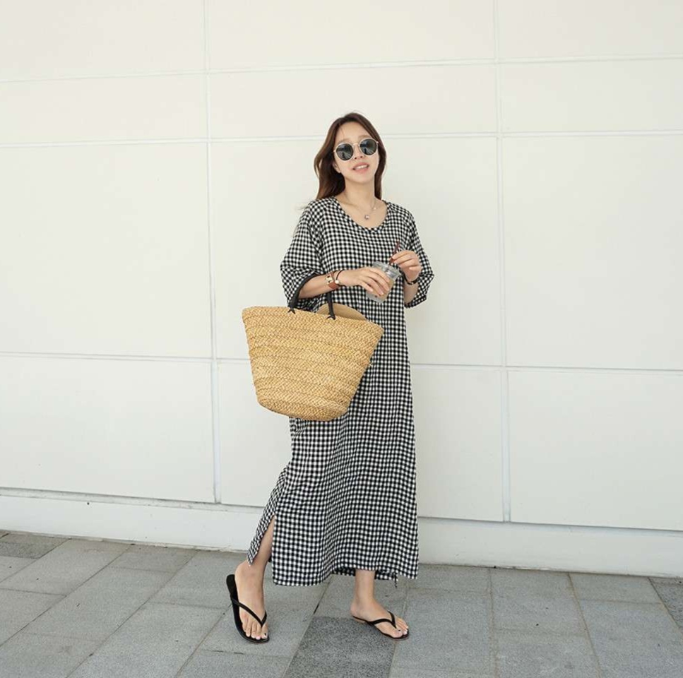 大人の余裕を感じる長丈ギンガムチェックのチュニック