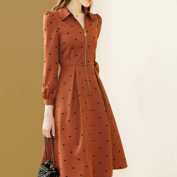 レトロな花柄とウエストマークの組み合わせが、エレガントで洗練された印象を演出します。