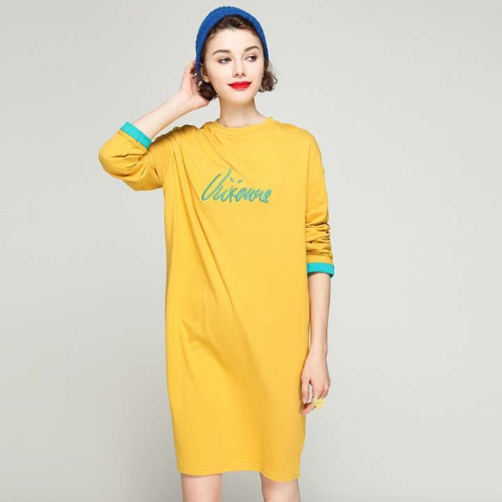 鮮やかなイエローカラーが目を引く、スポーティーでカジュアルなレディースチュニックです。