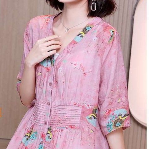 小花柄が可愛い赤系半袖ティアードチュニック