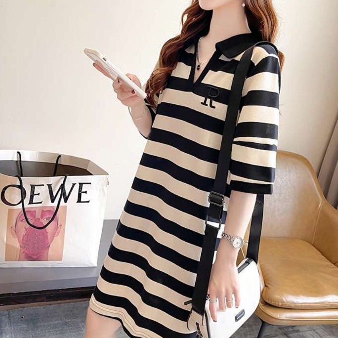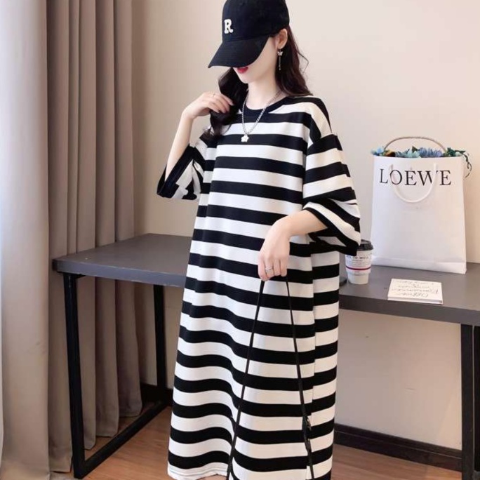 クラシカルなボーダー柄オーバーサイズチュニックワンピース