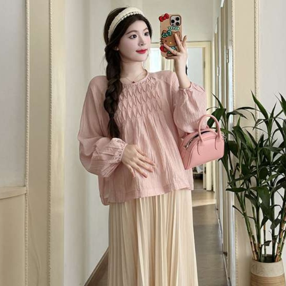 柔らかい生地感が女性らしさを引き立て、パフスリーブのデザインが二の腕をすっきりと見せてくれます。