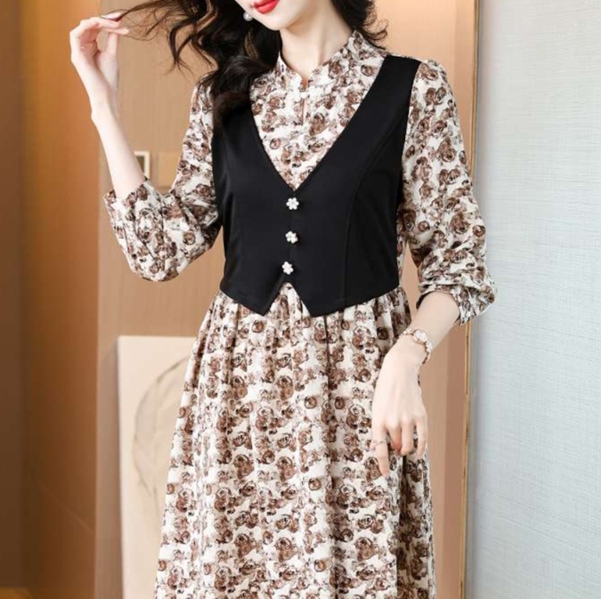 ベスト付き花柄チュニックで大人の重ね着スタイル