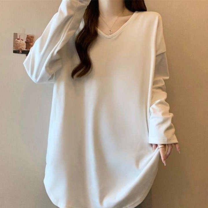 すっきりとしたVネックデザインが、首元をきれいに見せてくれる効果があります。