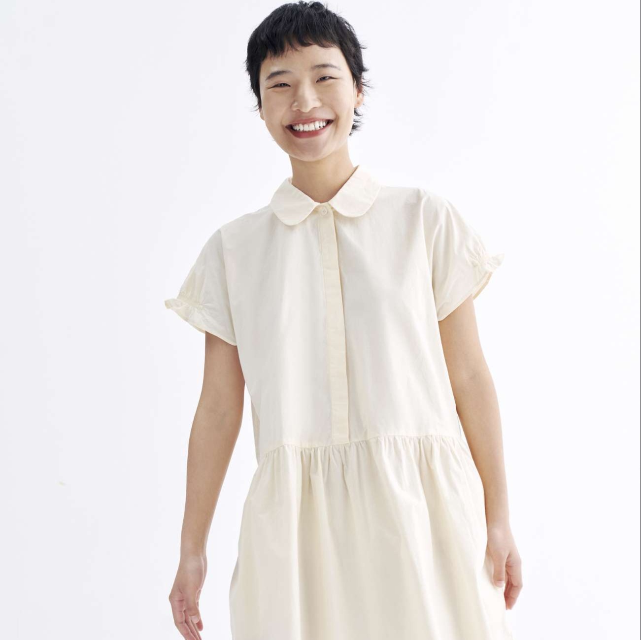 優しい印象の丸襟が高齢者の方の顔周りを明るく見せ、若々しい印象を演出します。