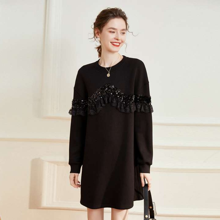 レディース向けレース裾切替ニットチュニックワンピース