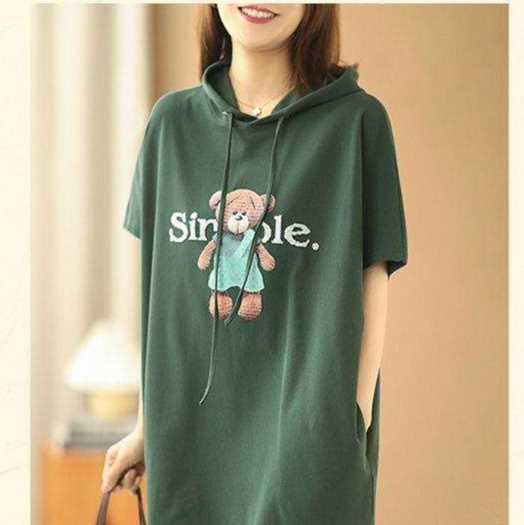緑のくまさん刺繍チュニックパーカーで遊び心