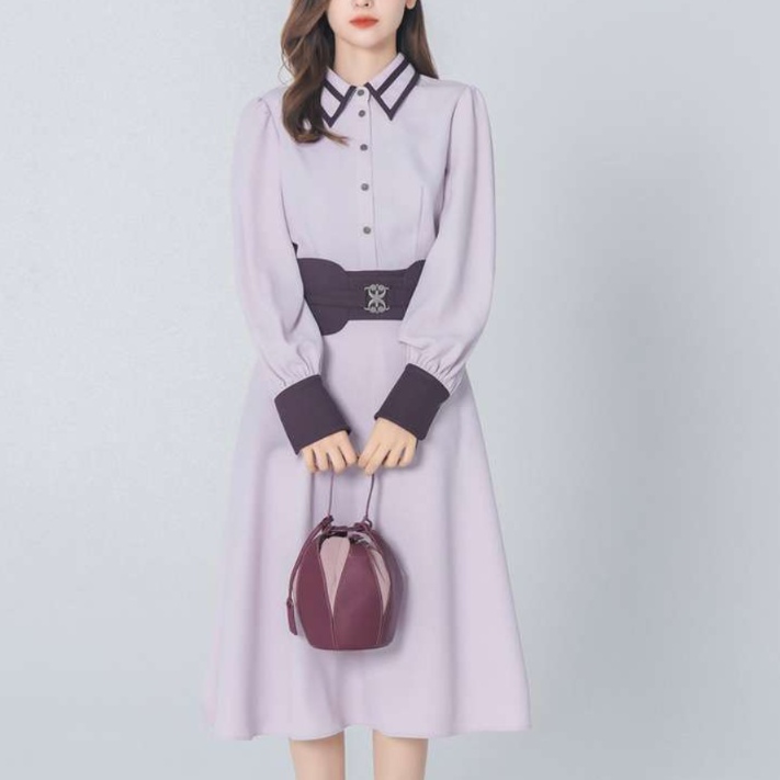スタンドカラーと繊細な留め具が、クラシカルな雰囲気を醸し出します。