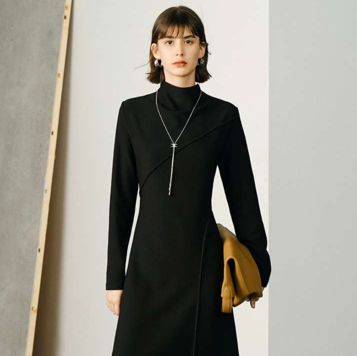 すっきりとしたモックネックデザインに、アシンメトリーな切り替えがモダンな印象の長めチュニック。