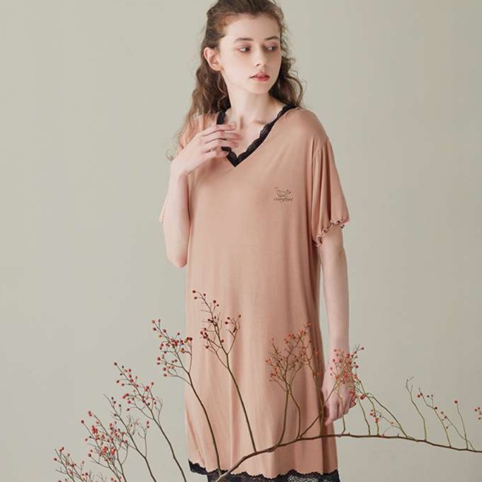 裾と襟元に施されたレースディテールが、上品な雰囲気を演出してくれます。