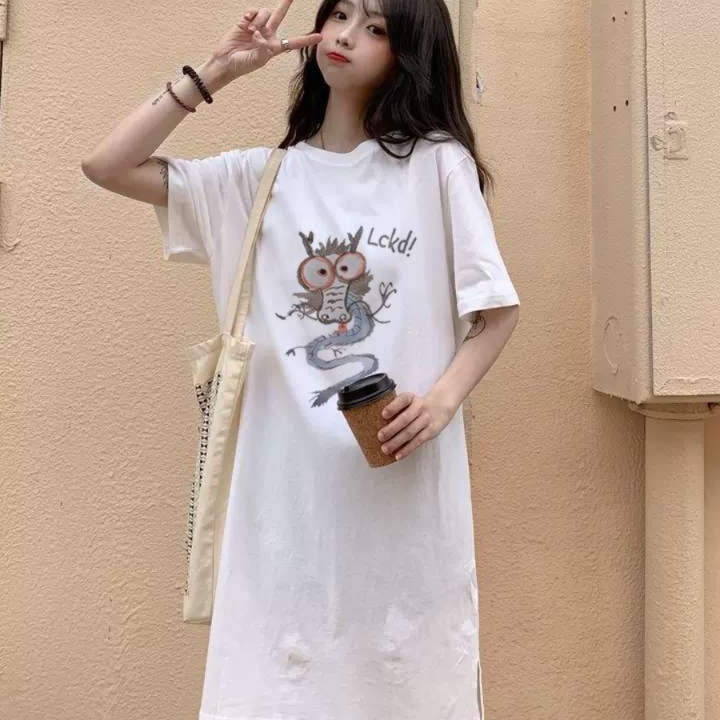 ゆったりとしたシルエットで体型カバーも叶えながら、胸元のかわいいイラストが目を引くポイントです。