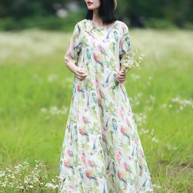 春の自然を感じる鳥柄レディースチュニックワンピース