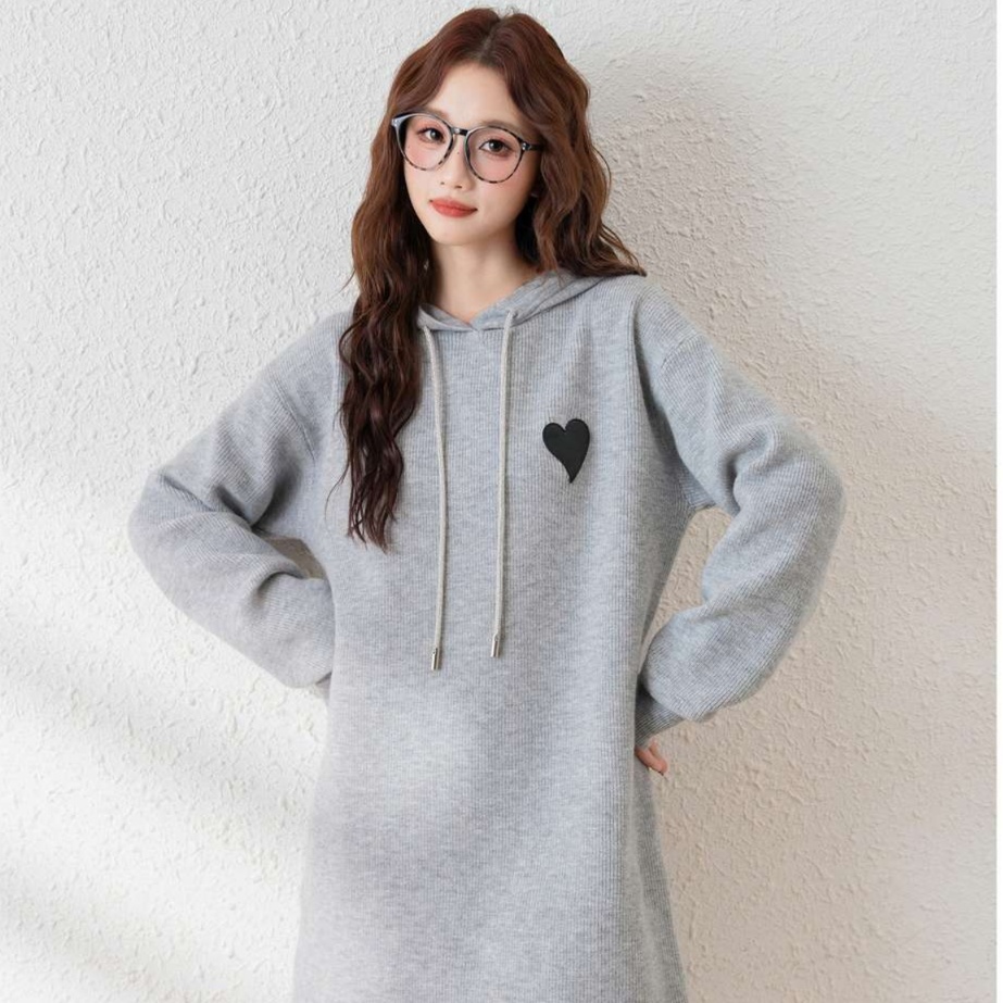 フード付きのデザインがカジュアル感を演出しつつも、シンプルなハートモチーフで大人可愛い雰囲気に。
