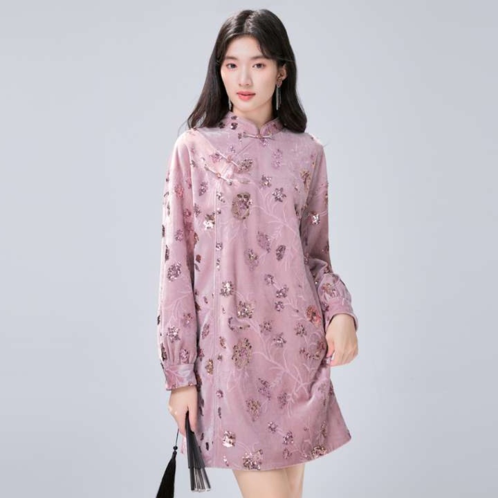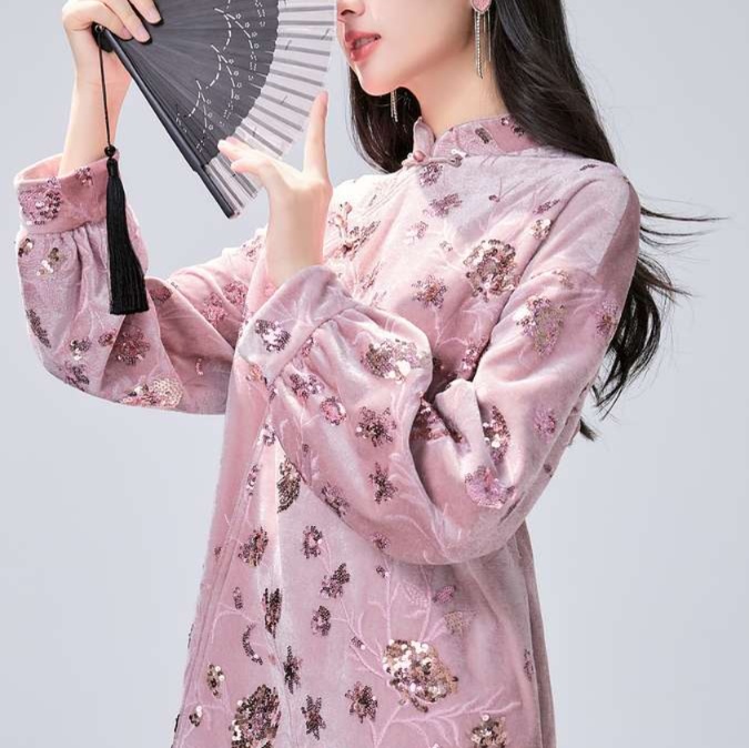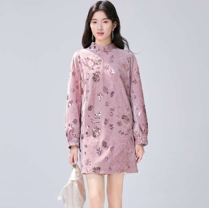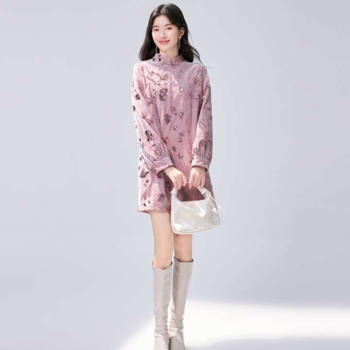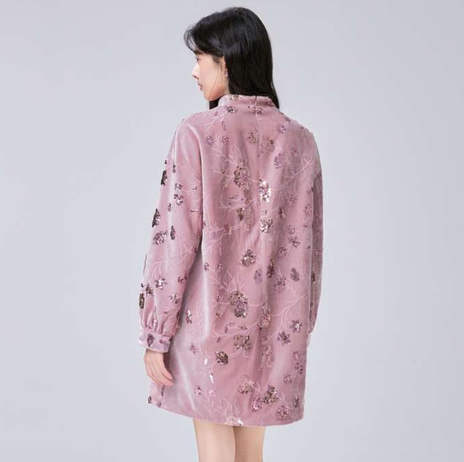 スタンドカラーとふんわり長袖が特徴の膝上丈チュニックワンピース。透け感のある生地に美しい花柄が施され、上品さを引き立てます。デイリーユースはもちろん、特別な日のコーディネートにもぴったりの一着。魅力的なシルエットが女性らしさを演出し、どんなシーンでも自信を持って着こなせます。