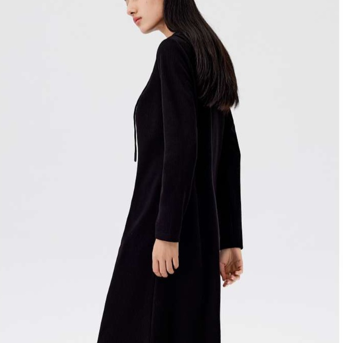 柔らかな肌触りのベロア素材を使用したチュニックスタイルのワンピース。フード付きのリラックス感がありつつ、すっきりとしたシルエットで洗練された印象を与えます。裾までストンと落ちるラインが美しく、カジュアルなシーンでも上品さを演出します。どんなスタイルにも合わせやすく、日常使いにぴったりな一枚です。