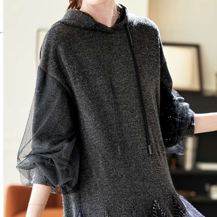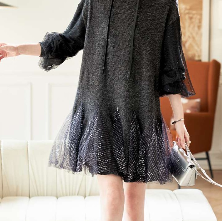 ふんわり透け感のあるメッシュ袖とチュール素材の裾が上品なエレガンスを演出するチュニック。