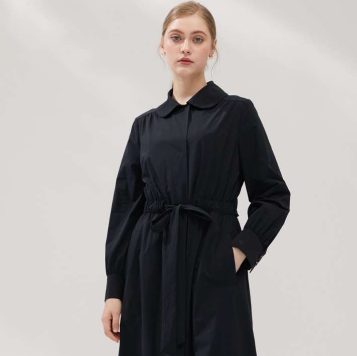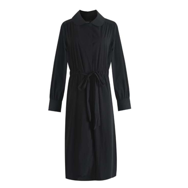 上品な襟元とウエストのリボンデザインが特徴的なチュニックワンピース。すっきりとしたシルエットながら、やや広がりのあるAラインで体型カバーも叶える一着。シックな雰囲気で、オフィスからお出かけまで幅広く活躍。