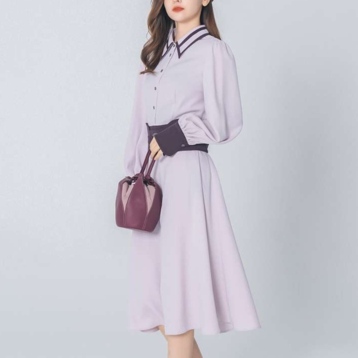 上品な襟元とパフスリーブが魅力の長袖チュニックワンピース。ウエストに施されたベルトがスタイリッシュなシルエットを引き立て、女性らしさを演出します。襟元や袖口のコントラストデザインが知的で洗練された印象を与え、さまざまなシーンに最適な一着です。カジュアルにもフォーマルにも合わせやすく、着るだけで自信を引き出してくれるアイテム。