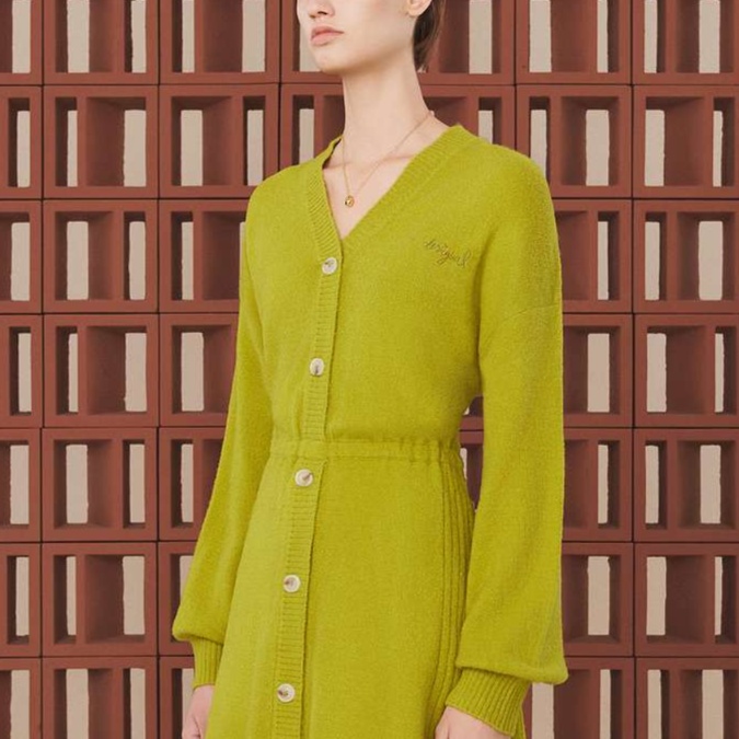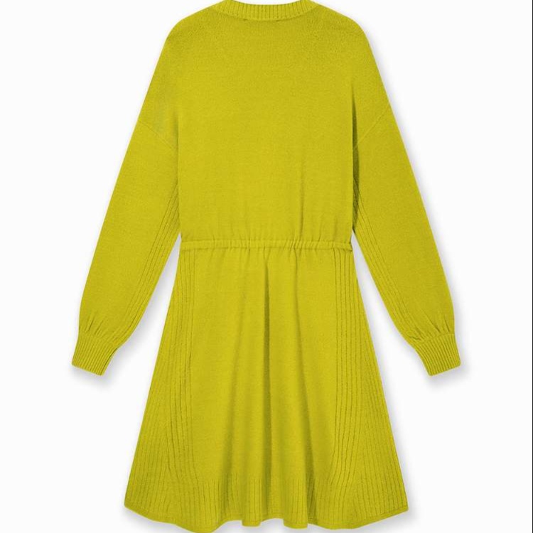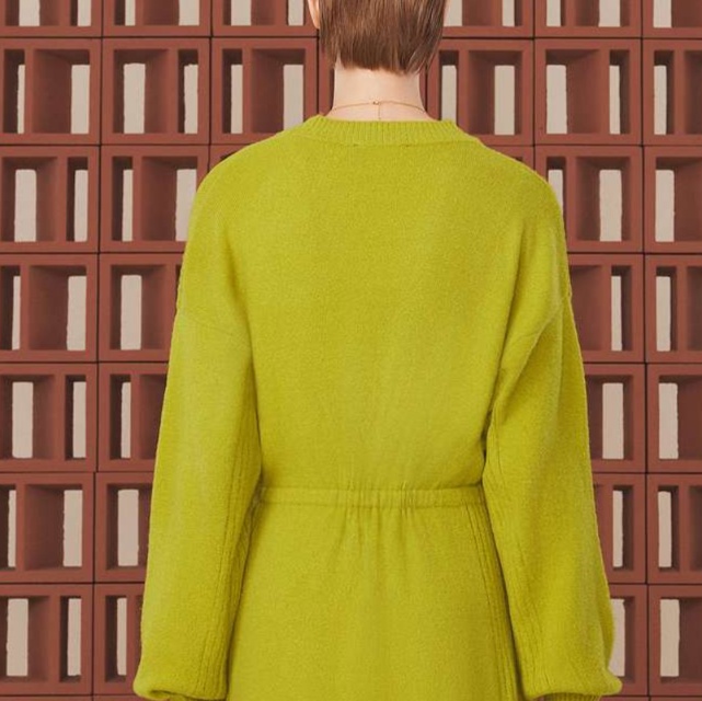 上品な縦編みデザインとフロントボタンが際立つニットワンピースは、女性らしさを引き立てるウエストシルエットが魅力。トレンド感漂う大きめの袖が、シンプルながらもスタイリッシュな印象を与えます。適度な丈感で、デイリーコーデにもぴったりなチュニックスタイル。様々なシーンで活躍する一着です。