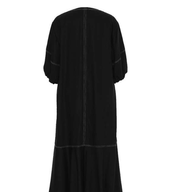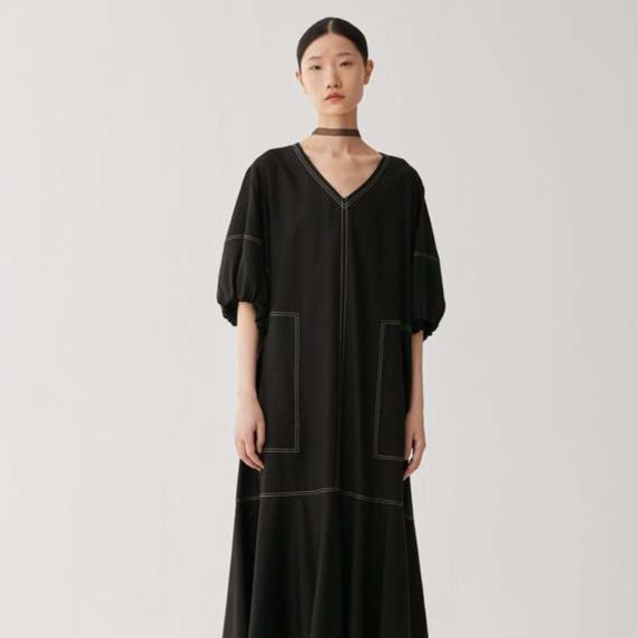 袖にボリュームを持たせたゆったりシルエットのチュニックワンピース。大きなポケットとこだわりのステッチが魅力的なアクセントを添える。絶妙な丈感とフレアシルエットが、カジュアルさを保ちながらも上品な印象を与える一着。デイリーユースにぴったりのアイテムで、シンプルなコーディネートでもスタイルアップを実現。
