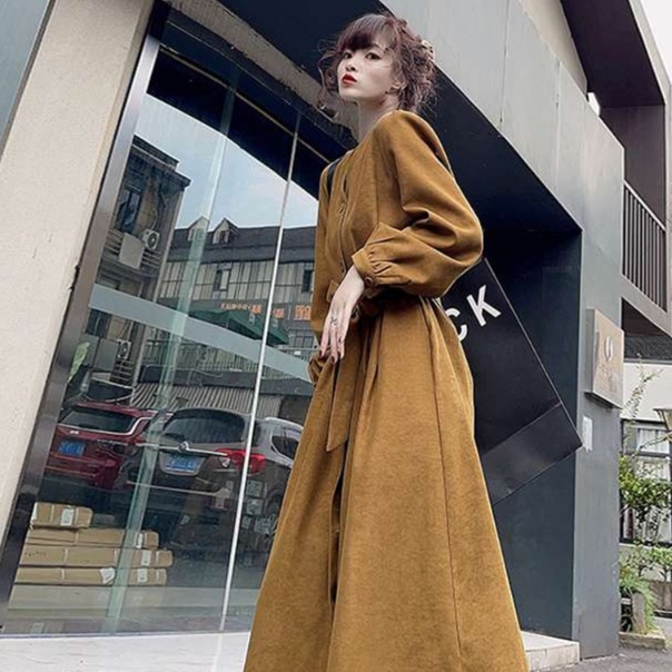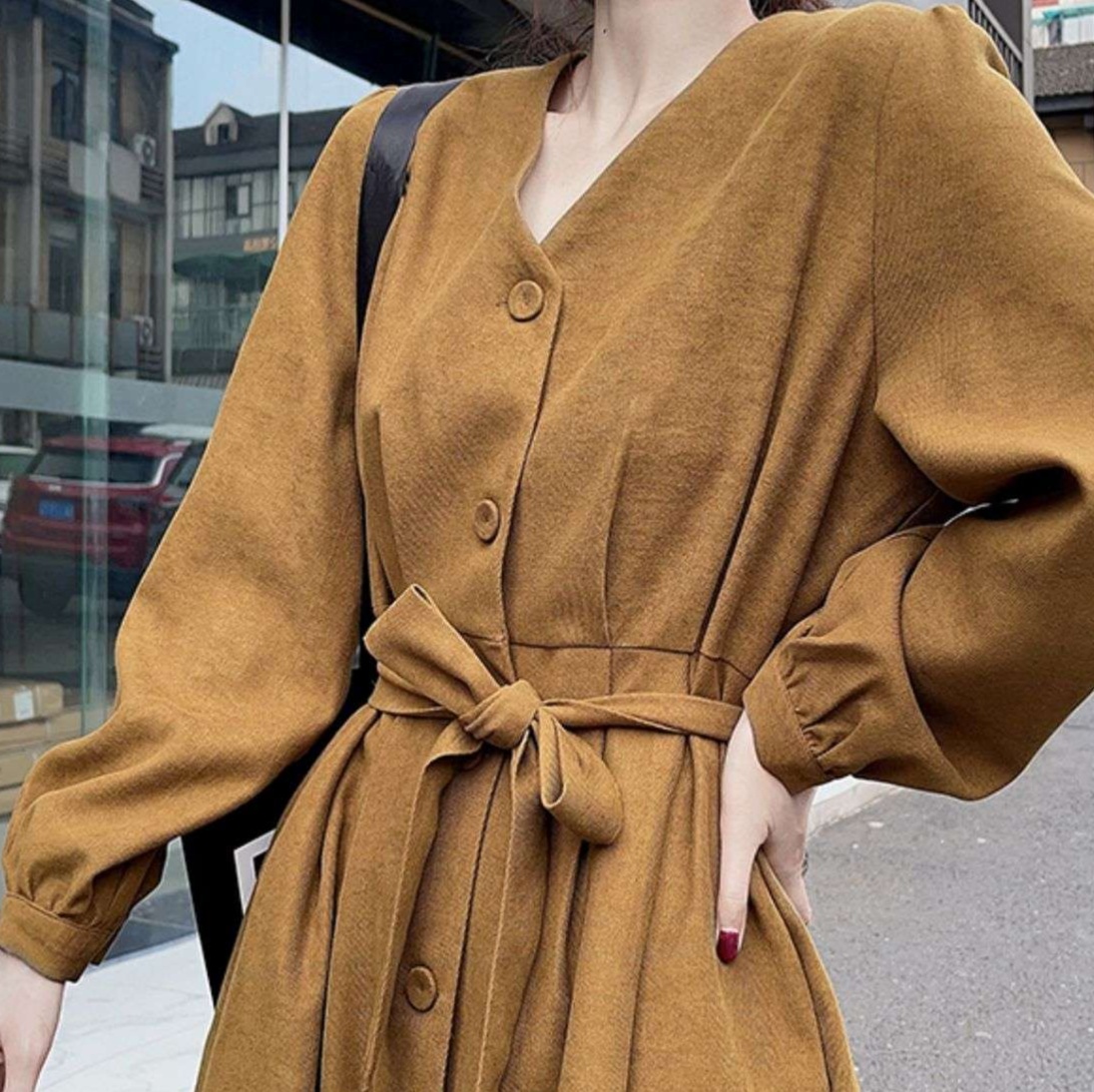 ボリューミーな袖とウエストマークの組み合わせで上品な雰囲気を演出。