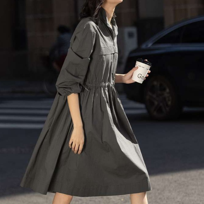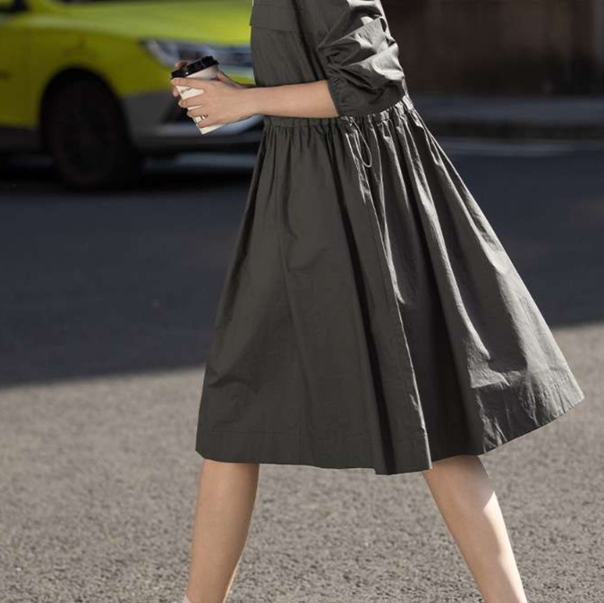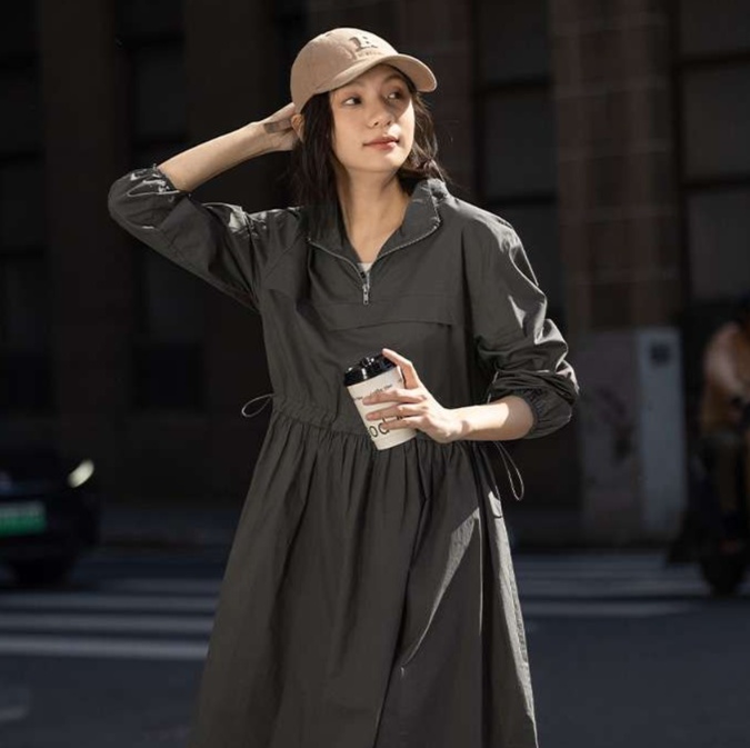 ハーフジップデザインが特徴のこのチュニックワンピースは、着脱も簡単で忙しい日々にぴったり。ウエストのギャザーが女性らしさを引き立て、裾がふんわり広がる上品なシルエットを実現。カジュアルながらもエレガントな印象で、スニーカーとも絶妙にマッチします。どんなシーンでも活躍する一着です。