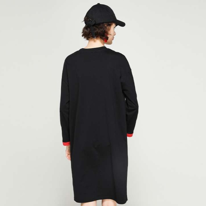 袖口のカラーアクセントと胸元の筆記体ロゴがおしゃれなポイント。