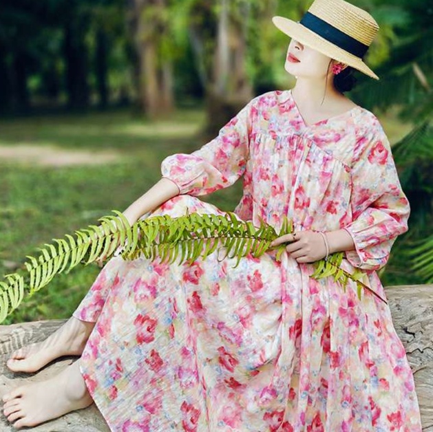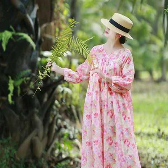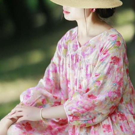 優雅な花柄と豊かなギャザーが魅力を引き立てる、大人の女性にふさわしいチュニックワンピース。七分袖のゆったりとしたシルエットが体型を美しくカバーし、リラックスした着心地を提供します。穏やかな休日を草原で過ごす際にぴったりの、愛されるデザインです。美しさと快適さを兼ね備えた一着で、特別な時間を演出します。