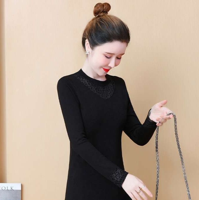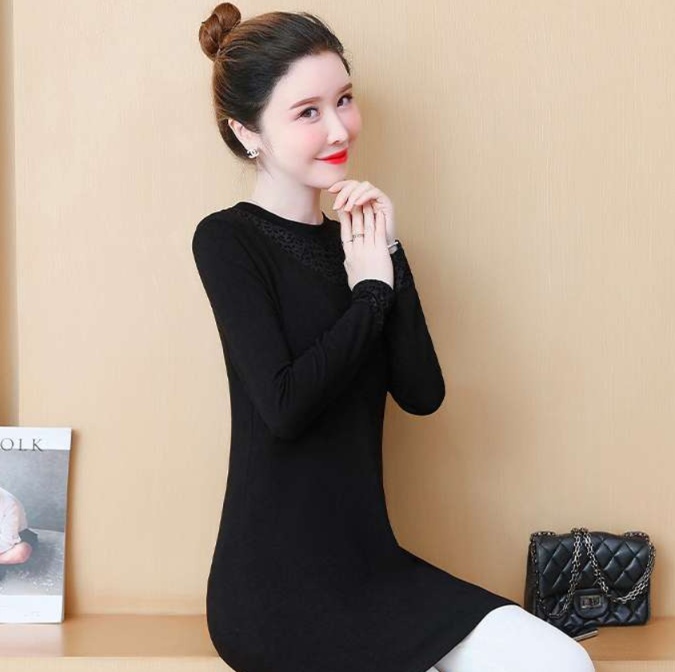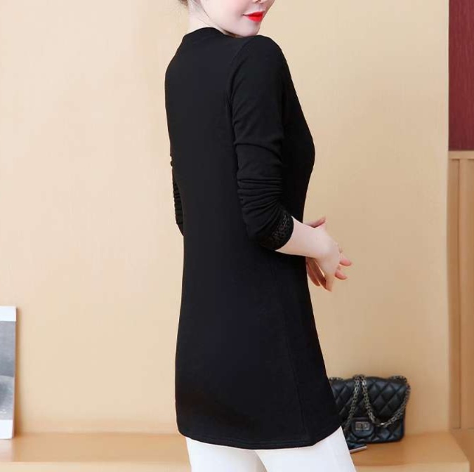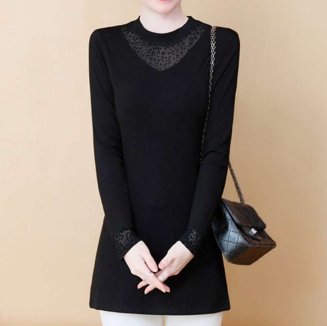 上品なメッシュレースが襟元と袖口を彩る洗練されたチュニック。