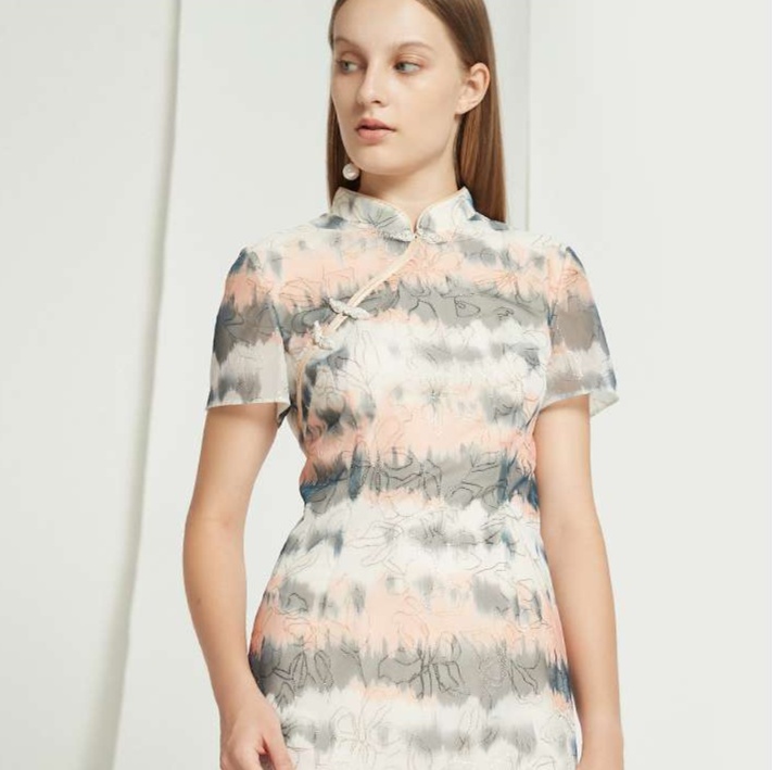 シアー素材を贅沢に使用したチャイナカラーのチュニックワンピース。上品なタイダイ柄が魅力を引き立て、短めの袖丈が季節感を演出します。すっきりしたシルエットで、カジュアルな日常使いから特別なシーンまで幅広く活躍する一着。どんなスタイルにも合わせやすく、あなたのコーディネートを格上げしてくれるアイテムです。