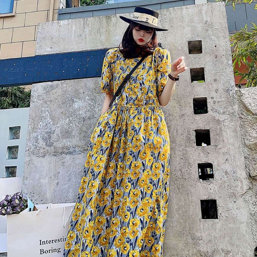 優雅なシルエットが魅力のチュニックスタイルワンピース。パフスリーブと華やかな花柄が可愛さを引き立て、リラックスした着心地を実現。帽子を合わせれば、大人の女性にぴったりなフェミニンなコーディネートが完成します。体型カバー効果もあり、さまざまなシーンで活躍する一着です。