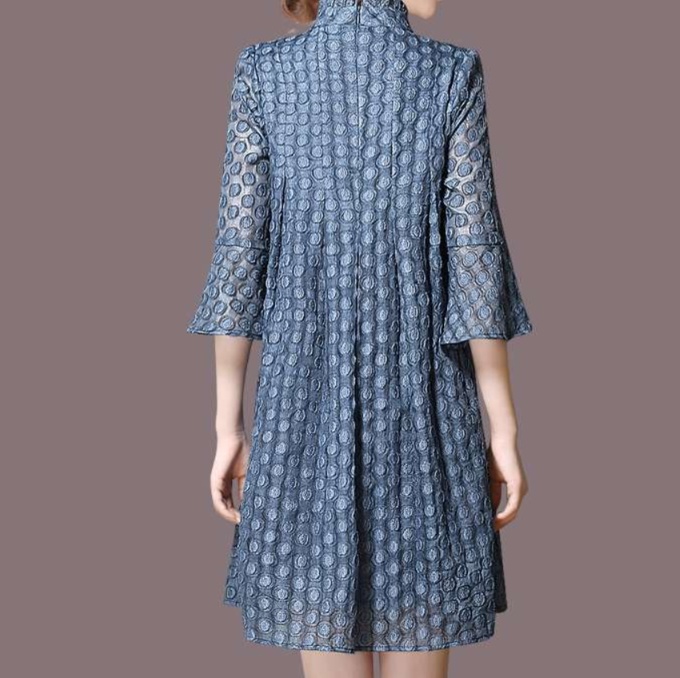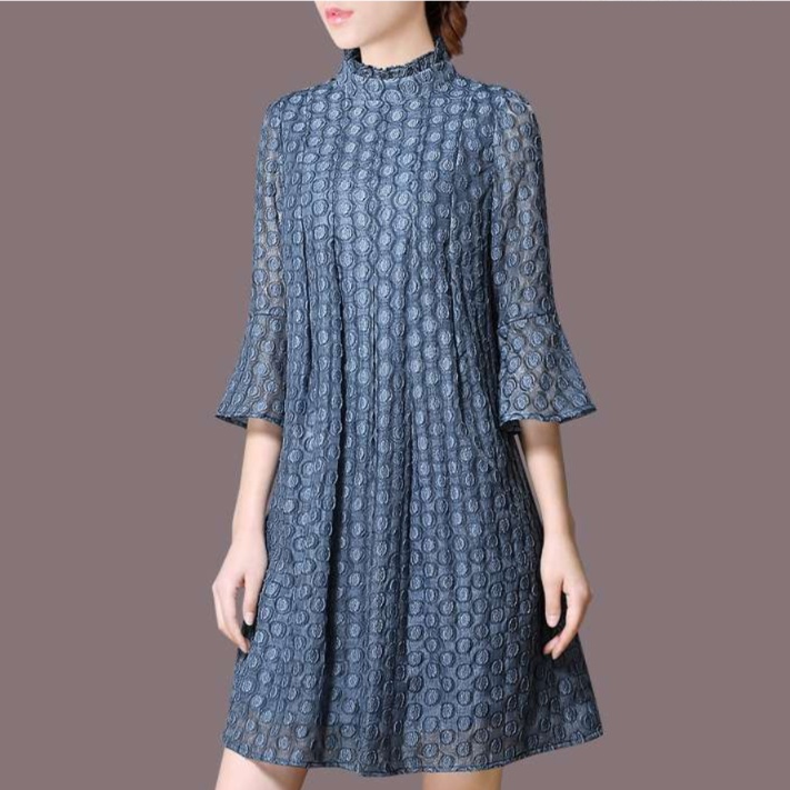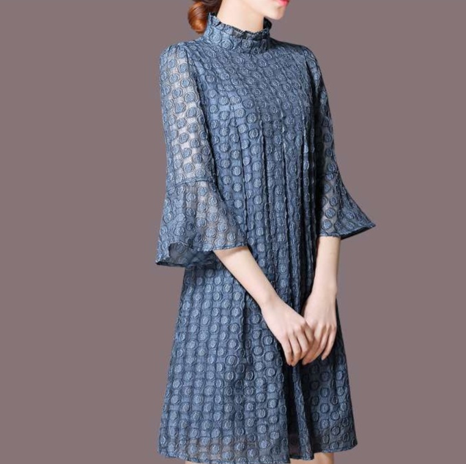 エレガントな立ち襟とフレア袖が特徴のチュニックワンピース。細やかな総柄が施され、軽やかな素材感が上品さを引き立てる。ゆったりとしたシルエットで、体型をさりげなくカバーしつつ、どんなシーンでも華やかさを演出する一着。デイリーから特別な日まで幅広く活躍するアイテム。