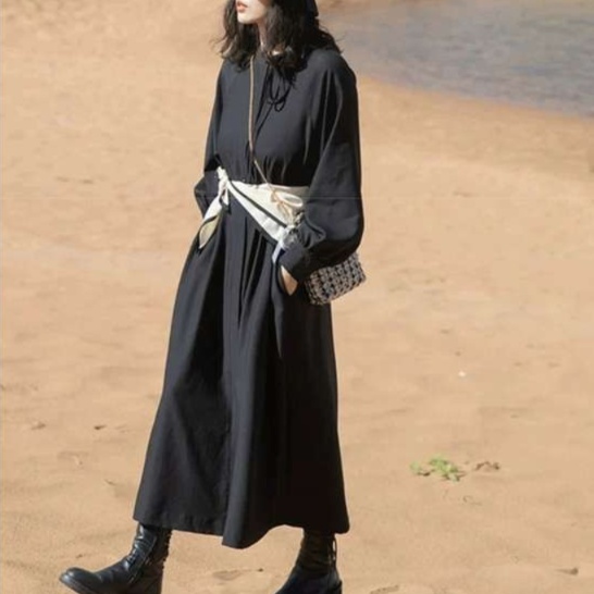 柔らかな袖と裾のデザインが魅力のミモレ丈チュニックワンピース。首元のリボンや共布ベルトでウエストを引き締め、スタイリッシュな印象を演出。ゆったりとしたシルエットは、デイリーファッションから休日のお出かけまで幅広く対応。リラックスした着心地で、さまざまなシーンで活躍する一着です。