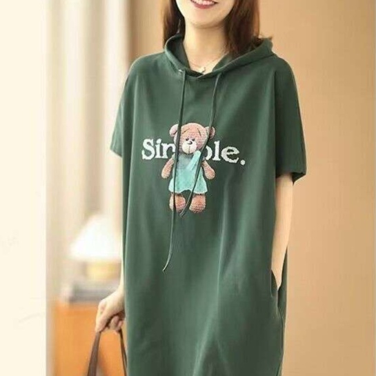 愛らしいくまの刺繍がアクセントのフード付きチュニック。スウェット素材のゆったりしたシルエットは体型を美しくカバーし、リラックス感あふれる着心地を提供します。普段使いはもちろん、ルームウェアとしても大活躍する、心地よい一着です。オシャレでありながら機能性も兼ね備えたこのチュニックを、ぜひワンピーススタイルで楽しんでください。