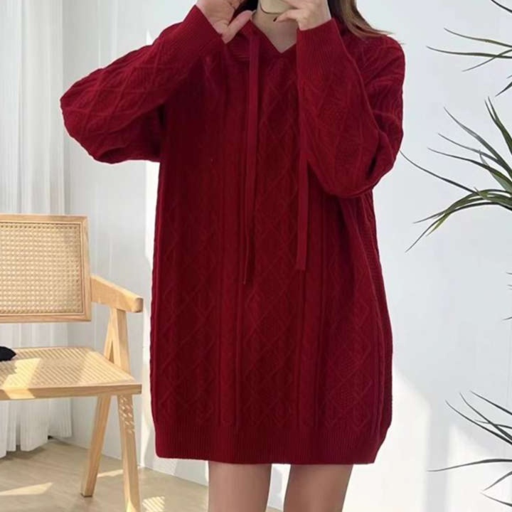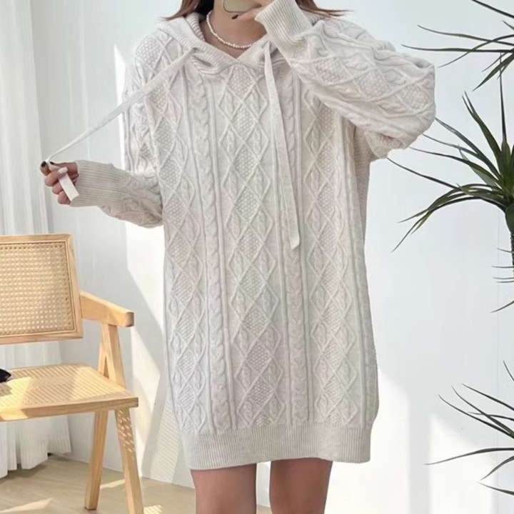 女性らしい柔らかなシルエットのチュニック丈ニットワンピース。