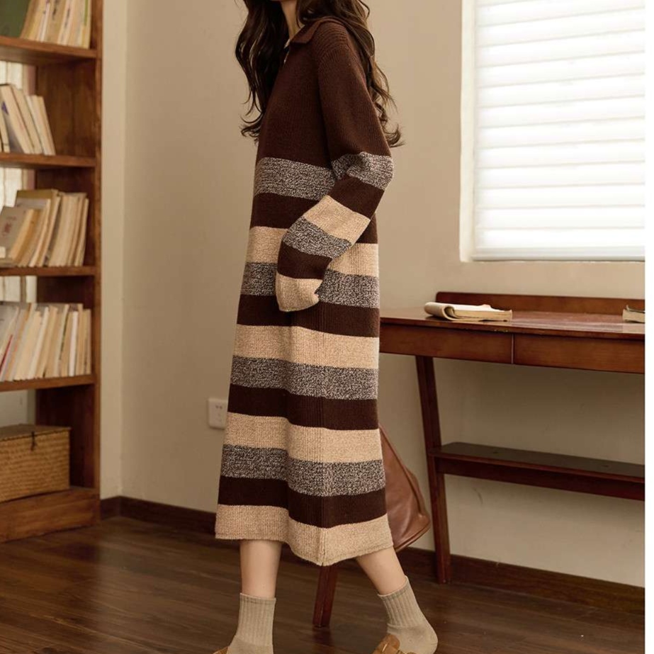 マルチボーダーデザインのロングチュニックは、上質な素材感が魅力。リブ編みの立体感とゆったりしたシルエットが、リラックスした大人のスタイルを実現。深みのある配色は秋冬シーズンに最適で、カジュアルからフォーマルまで幅広く活躍する一着です。シンプルなアクセサリーを加えることで、日常使いにも特別な日にもぴったりなコーディネートが完成します。
