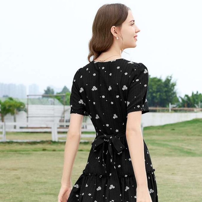 胸元のスリットデザインにウエストのリボンが女性らしさを引き立てる一着。ティアード切り替えが裾に向かって広がるシルエットは、上品さを演出。デイリーユースに最適な程よい着丈で、チュニックとしても楽しめるスタイル。どんなシーンでも活躍し、コーディネートの幅を広げてくれるアイテムです。