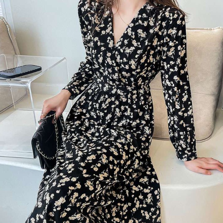 小花柄が華やかさを添えるチュニックスタイルのワンピース。しなやかな生地が上品さを引き立て、ウエストマークで美しいシルエットを実現。フレアな裾が女性らしさを際立たせ、長袖デザインは季節を問わず楽しめる。デイリーユースにも特別なシーンにもぴったりな一着。