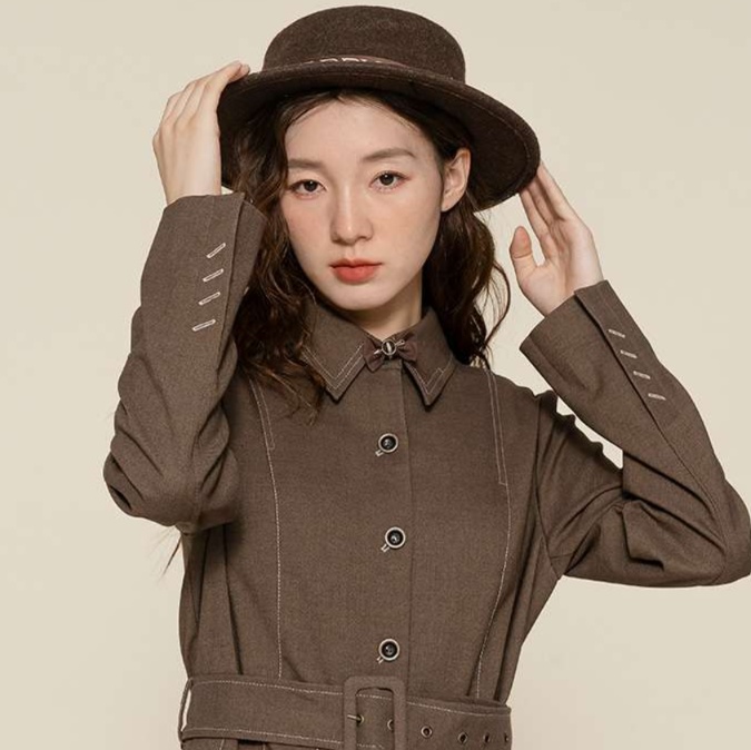 太めのベルトで引き締めることで、メリハリのある女性らしいラインを強調