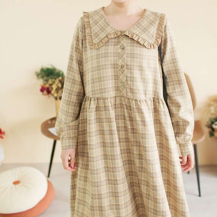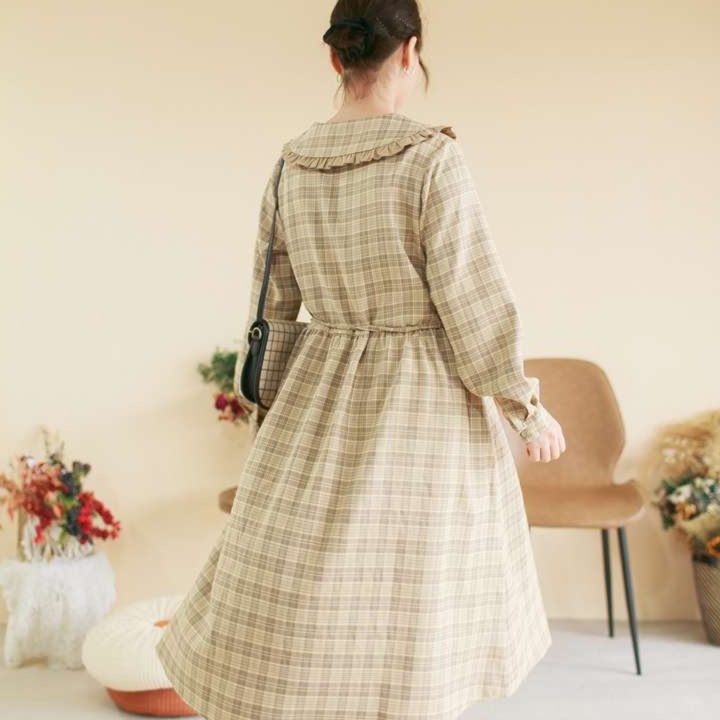 ふんわりとした優しいシルエットのチュニックワンピース。大きめの襟元にはフリルが施され、胸元のボタンが愛らしさを引き立てるデザイン。裾までゆったりとしたラインで、どんな体型にもフィットし、快適な着心地を楽しめる一着。カジュアルにもフォーマルにも合わせやすく、日常のコーディネートに華を添えるアイテムです。