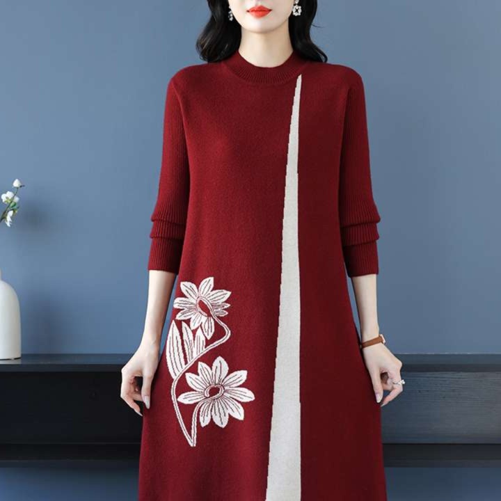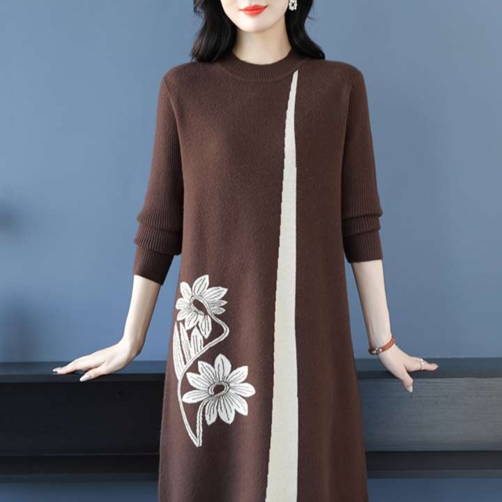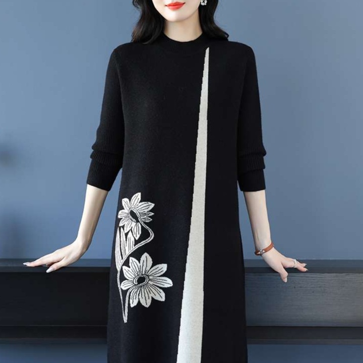 個性的なデザインが魅力のチュニック風ワンピース。縦ラインの切り替えと大きな花の刺繍が上品さを引き立て、膝丈のシルエットが美しい印象を与えます。オフィスシーンからお出かけまで、幅広く活躍する一着。秋冬にぴったりな暖かみのある素材感で、快適に過ごせます。シンプルながらも存在感のあるスタイルを楽しんでください。