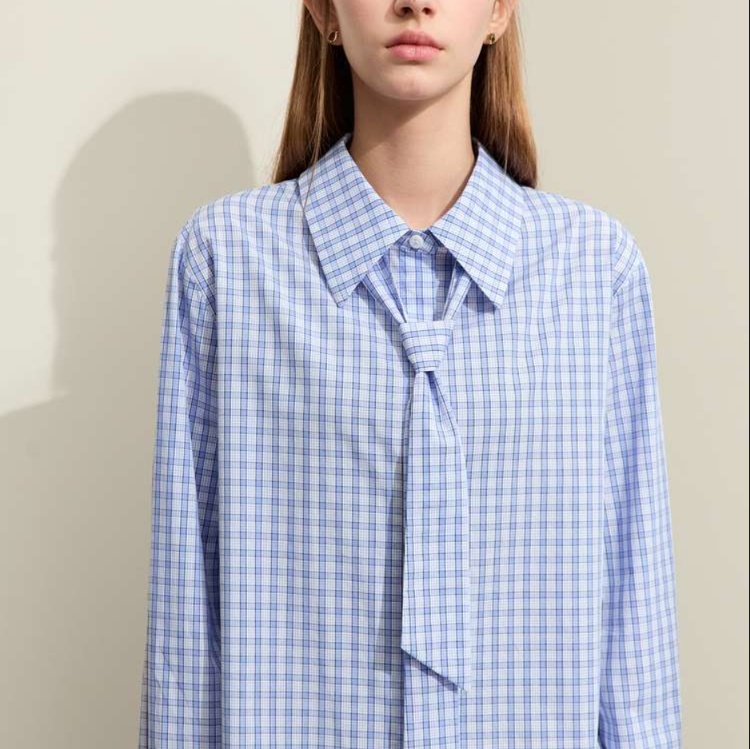 首元の上品なリボンがアクセントとなり、背面のロゴがスタイリッシュな印象を与えます。