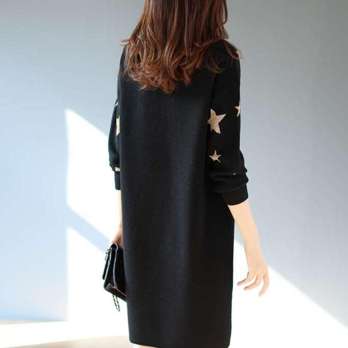 柔らかな素材で、心地よい着用感を実現したニットチュニックワンピース。全体に施された星のデザインが、上品さを引き立てる。ゆったりとしたシルエットが体型を優しくカバーし、リラックスした雰囲気を演出。長袖デザインは、季節の変わり目にもぴったりな一着。どんなシーンにもマッチし、スタイリングの幅を広げてくれるアイテム。