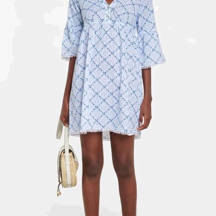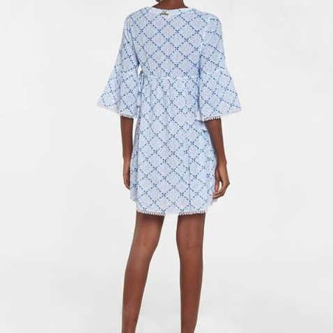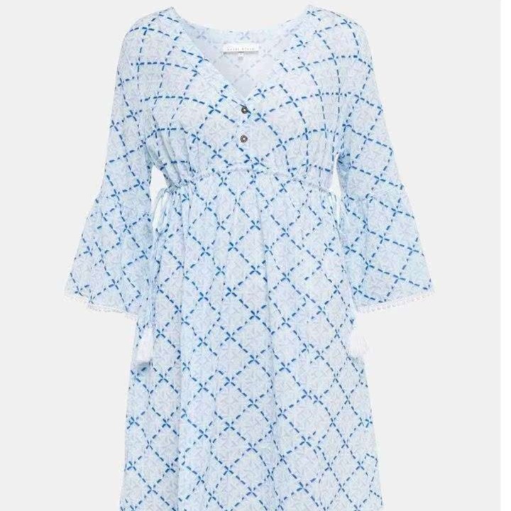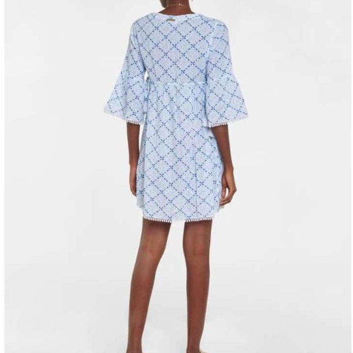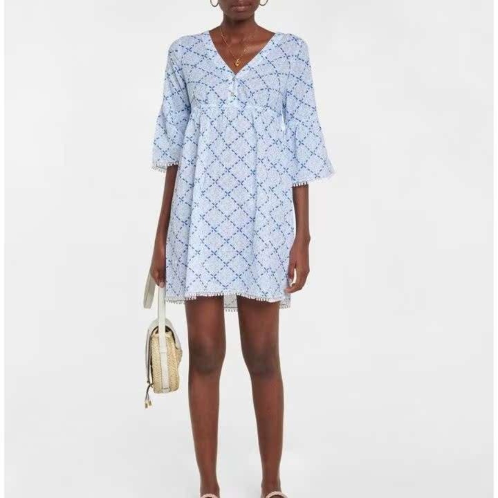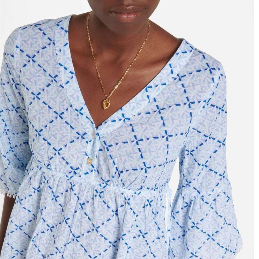 春夏にぴったりなゆったりとした七分袖のチュニックワンピース。裾には愛らしいレース飾りが施され、カシュクールデザインが女性らしさを引き立てる。軽やかな素材感で、日常使いにも最適。リラックスしたスタイルを楽しみながら、華やかさを添える一着。