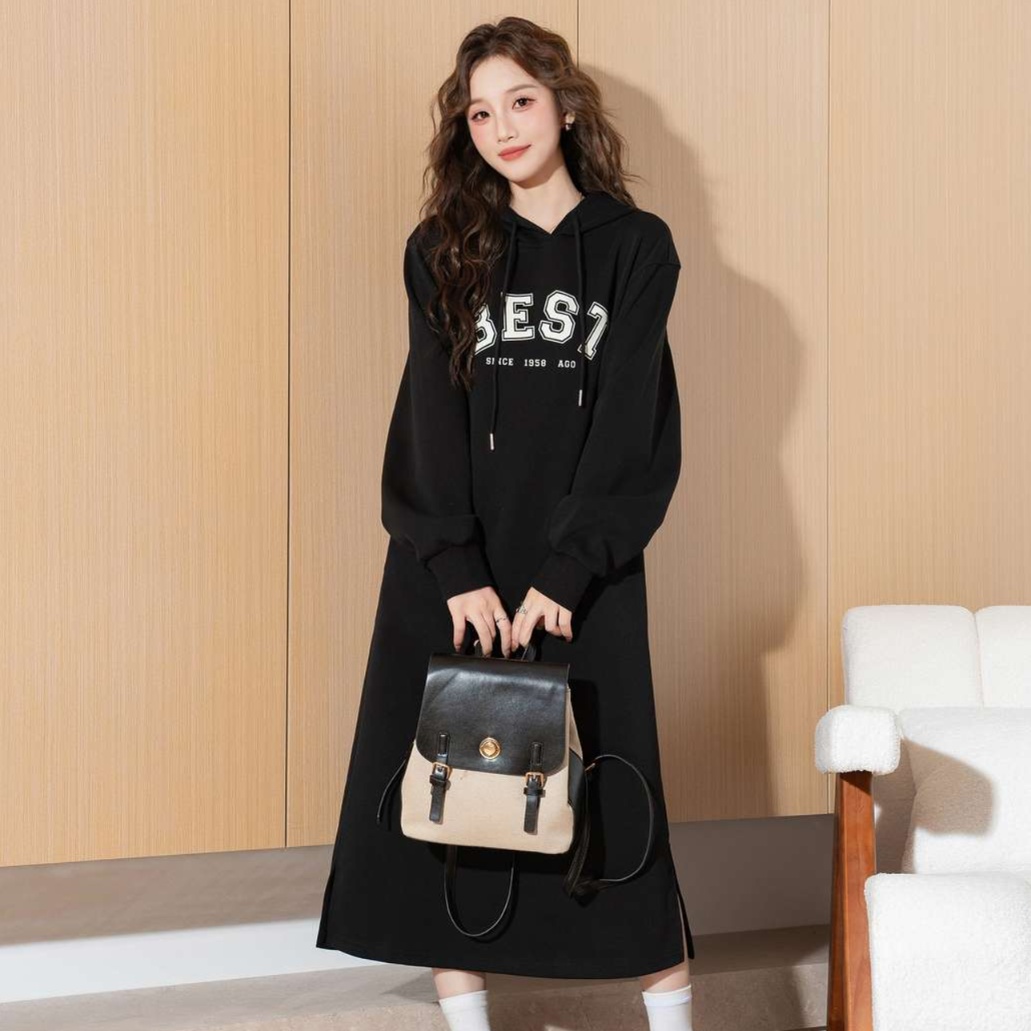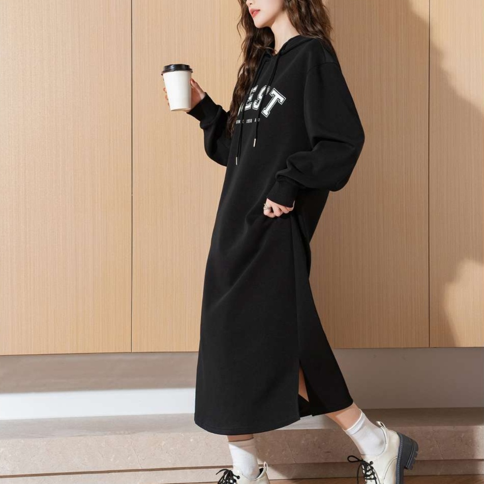 ふんわり柔らかな生地感のチュニック感覚で着られるマキシ丈パーカーワンピース。