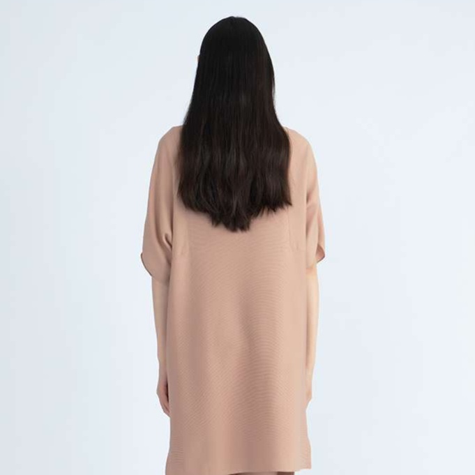 柔らかな素材感と緩やかなラインが女性らしい優雅な雰囲気を醸し出す