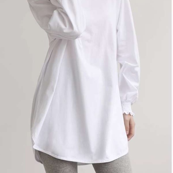 シンプルなデザインが魅力のチュニックワンピース。袖口のシャーリングがさりげないアクセントとなり、柔らかな印象を与えます。体型カバーも叶える長めの丈感で、カジュアルからお出かけまで幅広く活躍する一枚です。着心地の良さとスタイルアップを両立した、あなたのワードローブに欠かせないアイテムです。