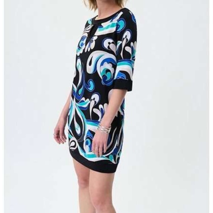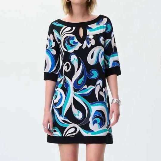 体型を美しくカバーするゆったりシルエットのチュニックワンピース。膝上丈で軽やかな印象を与え、七分丈の袖が上品さを引き立てます。首元のカットが女性らしさを際立たせ、裾と袖口の切り替えデザインがスタイリッシュなアクセント。カジュアルにもフォーマルにも対応できる、マルチな一着です。