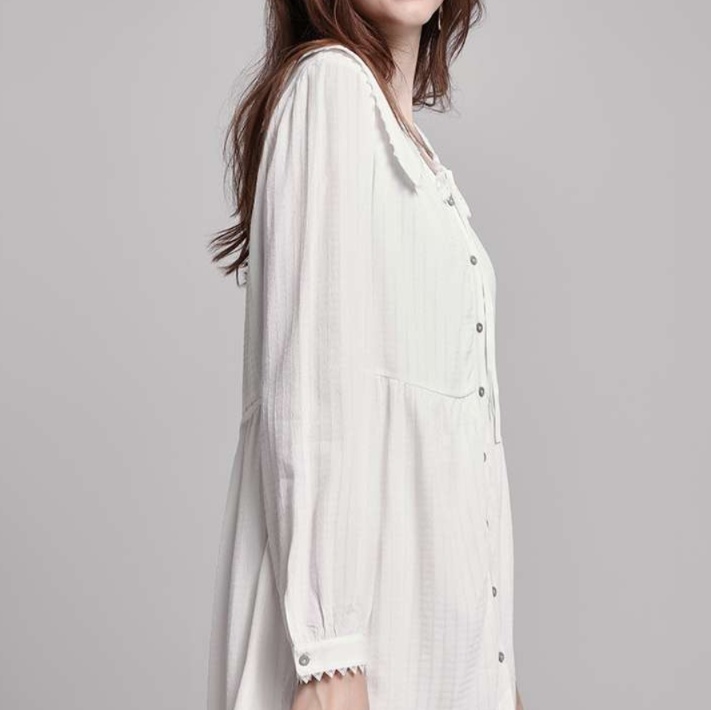 ビンテージスタイルの丸襟と繊細なレース装飾が魅力のチュニックワンピース。華やかさと上品さを兼ね備え、どんなシーンでも活躍する一着。リラックスしたシルエットが女性らしさを引き立て、コーディネートの幅を広げます。デイリーユースから特別な日まで、さまざまなスタイルにフィットするアイテムです。
