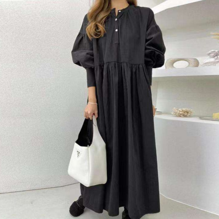 ゆったりとしたシルエットが魅力のチュニックワンピース。長めの袖丈が優雅さを引き立て、リラックスした着心地を提供します。カジュアルな日常使いにぴったりで、どんなスタイルにも合わせやすい一着。デニムやレギンスと合わせれば、洗練されたコーディネートが完成します。お出かけやリラックスタイムに大活躍する、あなたのワードローブに欠かせないアイテムです。